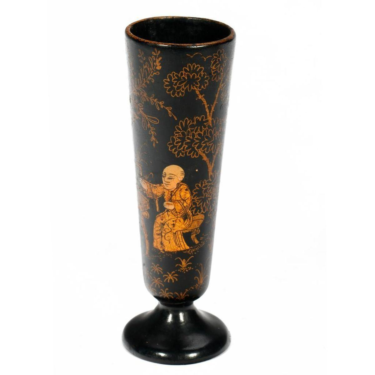 The sari with silver embroidery. Together with a round wood Chinese vase stand (overall 4 1/2in. diam.), and a small gilt-lacquer bud vase (4 1/2in.) Condition: The sari with some center areas of sun fading.