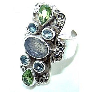 Silver and Blue Topaz & Peridot Ring. Allow 6 to 8 weeks for delivery.