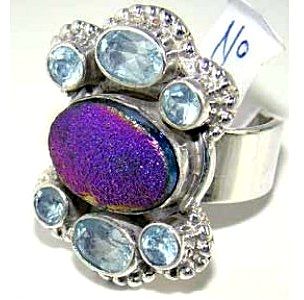 Silver and Blue Topaz & Titanium Drusy Ring. Allow 6 to 8 weeks for delivery.
