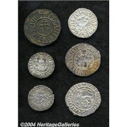 <B>Silver and Copper Collection, </B></I>an intriguing group of six early issues including: Copper Tank of Levon I, crude XF, Bedoukian 746 and ex-CNG Sale 41, lot 2469, Silver Trams of Levon I, 1196-1226 (2) including B303 and B225, XF and VF, Silver Tram 1226-70, VF, and Silver Double Trams (2): Levon I seated on throne, VF with some oxidation and superb XF, ex CNG Sale 41, lot 2465, rare. This lot should be carefully viewed. <B>Sold as is, no returns for any reason.</B></I><BR><I>From the Morris Geiger Collection.</B></I> 6 Coins <BR><BR><B>Important notice:</B> Heritage usually auctions material at the rate of 200-250 lots per hour. On some occasions eBay Live bid software or the Internet may not be able to keep up with the pace of the auction. We recommend placing a realistic absentee bid now as insurance to avoid disappointment. Occasionally the auctioneer may eliminate or reject an eBay Live bid, and the auctioneer may also reopen a lot after the close of the eBay live bidding (usually because we missed an audience bid), and may reject your bid even if it shows you as the winning bidder. By bidding via eBay Live, you agree that Heritage may award the lot to another bidder at its sole discretion under the circumstances described above or any other reasonable circumstances. Since eBay bids are not shown to us until we open the lot on the floor, we treat those bids just like floor bids. In most cases the floor responds before the eBay bid is presented to us, due to Internet lag time, so for consistency we have made it a policy that floor bids are always considered first over tie eBay live bids. Also please note that all Heritage lots purchased through eBay Live carry a 20% Buyer's Premium. Please make sure you read the Terms and Conditions before you bid.