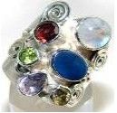 Silver and Fire Opal, Rainbow Moonstone & Mixed Stones Ring