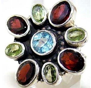 Silver and Garnet, Citrine & Blue Topaz Ring. Allow 6 to 8 weeks for delivery.