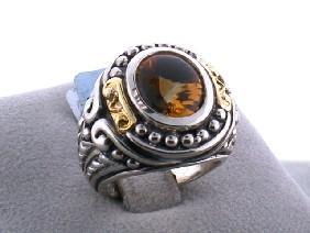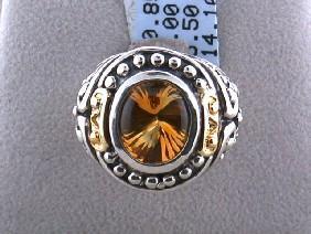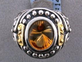 Silver and 14k Yellow Gold Ring with Citrine - 5.50 carats. The ring size is 5 and it weighs 14.5 grams