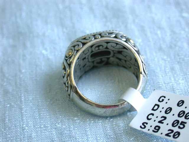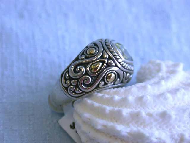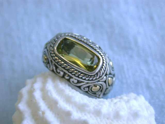Silver RingWith Light Quartz center stone and 18k Yellow Gold accents. The size is 5 and weighs 9.1 grams