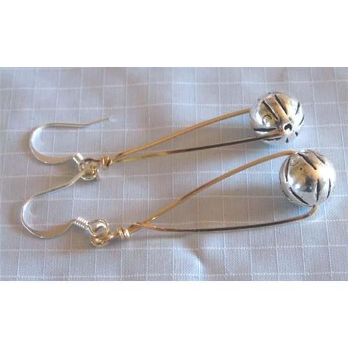 I handcrafted these beauties from 14 k gold filled square wire. A great triangle design. hand wrapped, O rings. I added a large, 10mm, Sterling silver bead.<p> Beautiful and stylish~unique, one of a kind creation!</p>Super for everyday or that special day...Jeans to little black dress<p> What a great 'anytime' Gift! Silver plate french hook ear wires,but I will be happy to put sterling silver ear wires on these. I designed these before I got hooked on Bali silver Ü<p> Just over 2 inches in length <p>