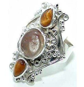 Silver and Golden Rutilated Quartz & Tiger's Eye Ring. Allow 6 to 8 weeks for delivery.
