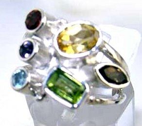 Silver and Mixed Stones Ring. Allow 6 to 8 weeks for delivery.