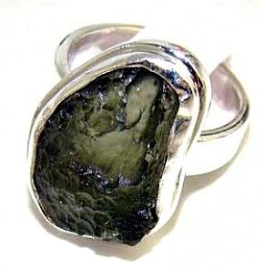 Silver and Moldavite Ring. Allow 6 to 8 weeks for delivery.