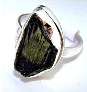 Silver and Moldavite Ring. Allow 6 to 8 weeks for delivery.