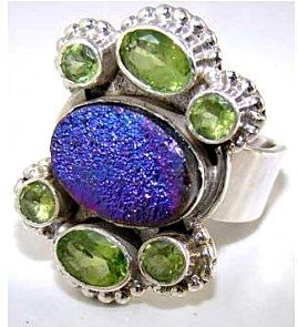 Silver and Peridot & Titanium Drusy Ring. Allow 6 to 8 weeks for delivery.