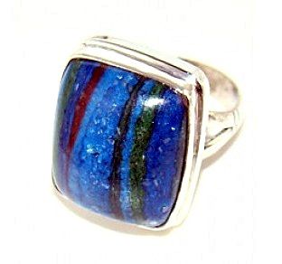 Silver and Rainbow Calsilica Ring. Allow 6 to 8 weeks for delivery.