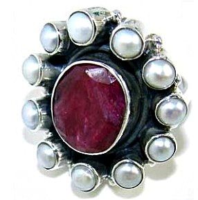 Silver and Ruby & Pearl Ring. Allow 6 to 8 weeks for delivery.