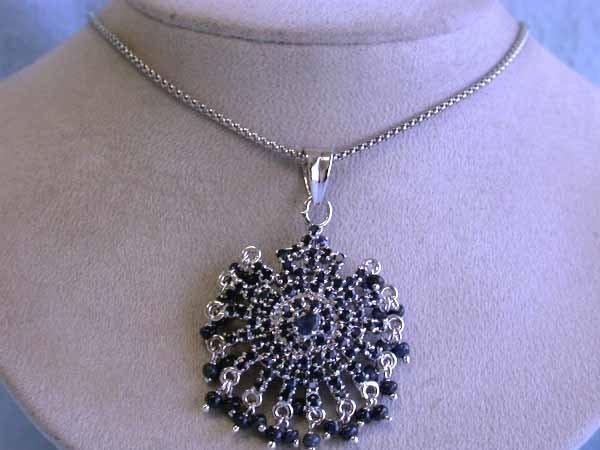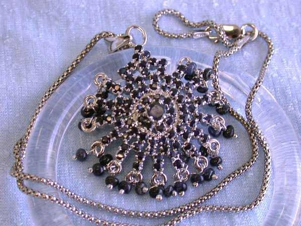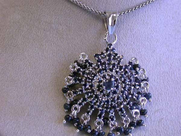 Silver and Sapphire Necklace approximately 2 x 1.5 inches approximately 16 inches long and weighs 14.3 grams