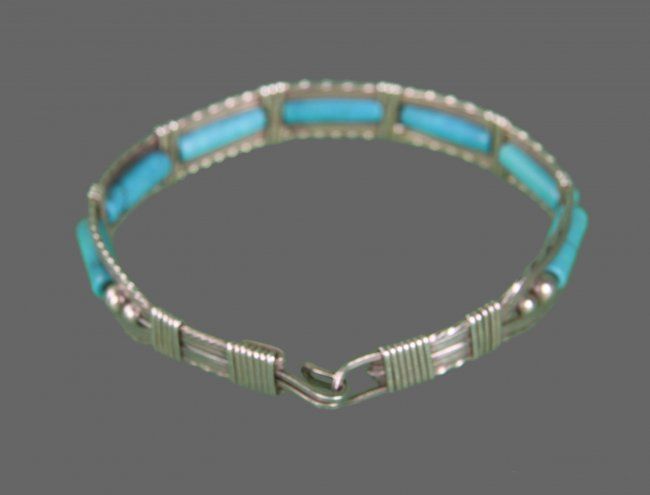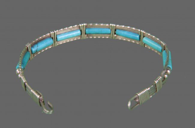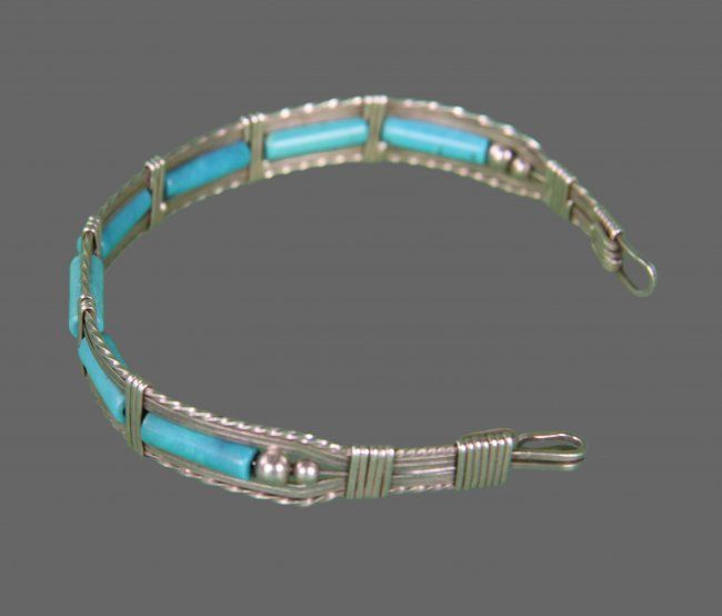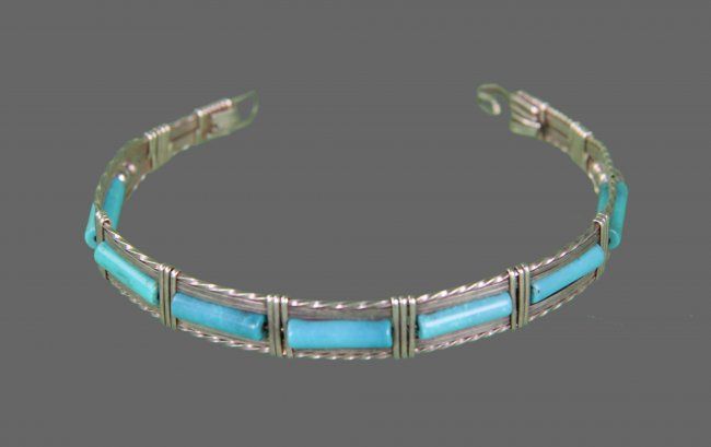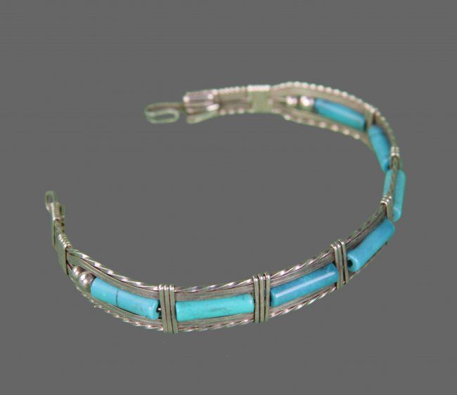 Silver and Turquoise Bracelet (Size: See Last Photo for Measurements)
