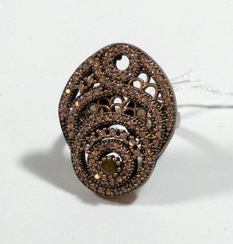 Silver and brass ring set with transparent gemstones and a green gemstone, size 7, weight: 8.9 gm.