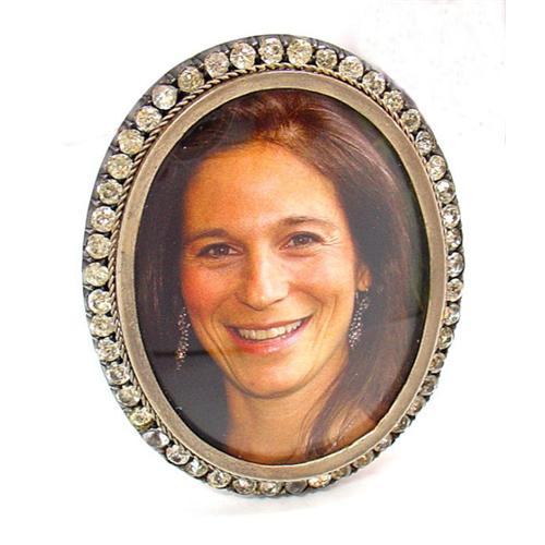 </font></strong>19th Century oval silver miniature picture frame. Prong set with faceted paste. The elegant hinged easel stand forms a curvilinear A-shape.