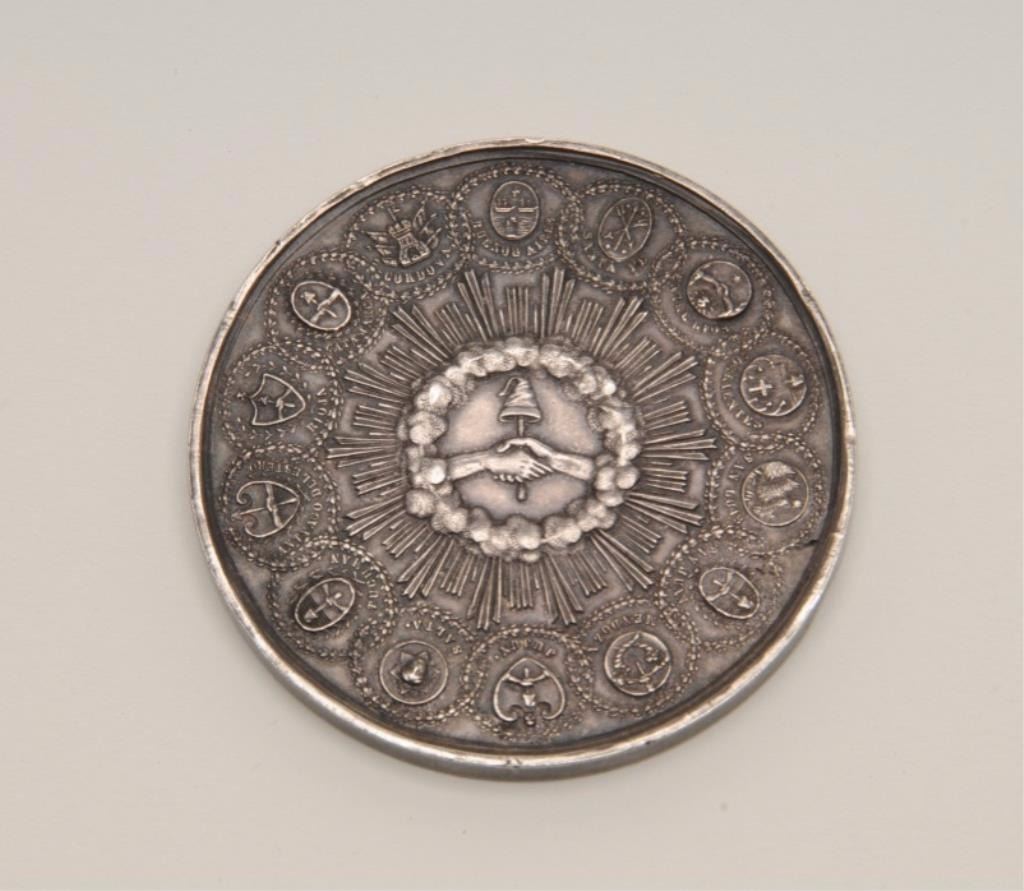 Silver die struck medal; San Jose 1860; Argentine Crest; Commemorates 1859 battle; great detail; most were melted. Est.: $175-$350.