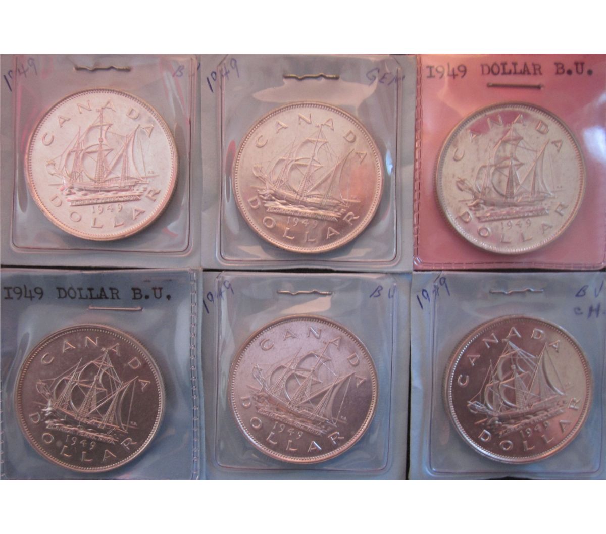 Silver dollar 1949 in MS-63. Lot of 6 coins.