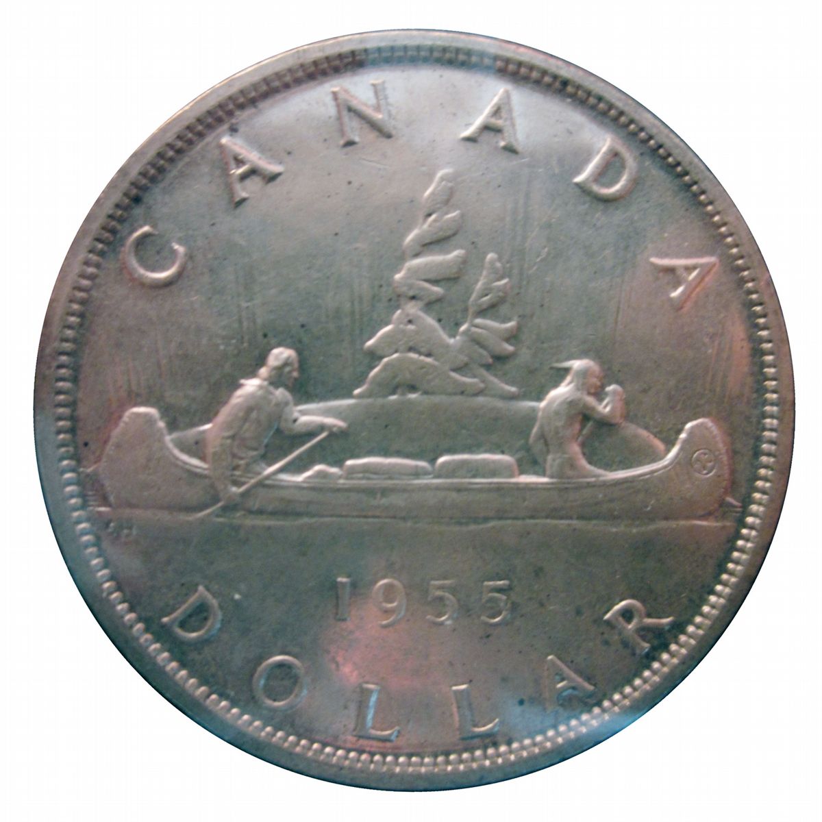 Silver dollar 1955 AU-50; Arnprior without Die Break.