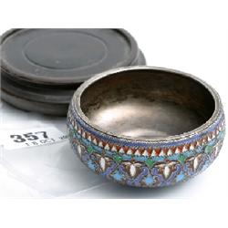 Silver gilt (gilt rubbed) and cloisonné enamel bowl by Ivan Khlebnikor dated 1885