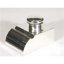 Silver inkwell with sloped front opening to reveal a gilt three divisional stamp box, Birmingham, 1907