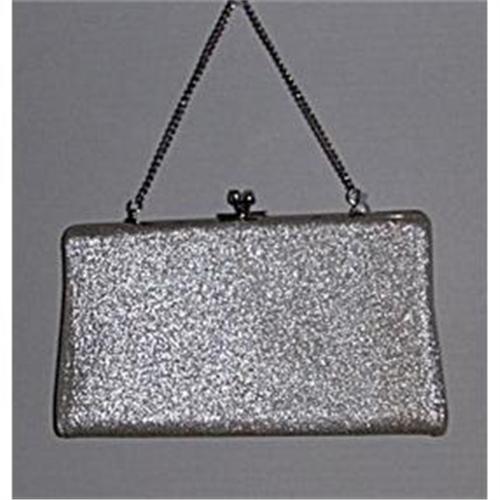 <tr><td>Title:Silver lame' box evening bag w/chain</td></tr>