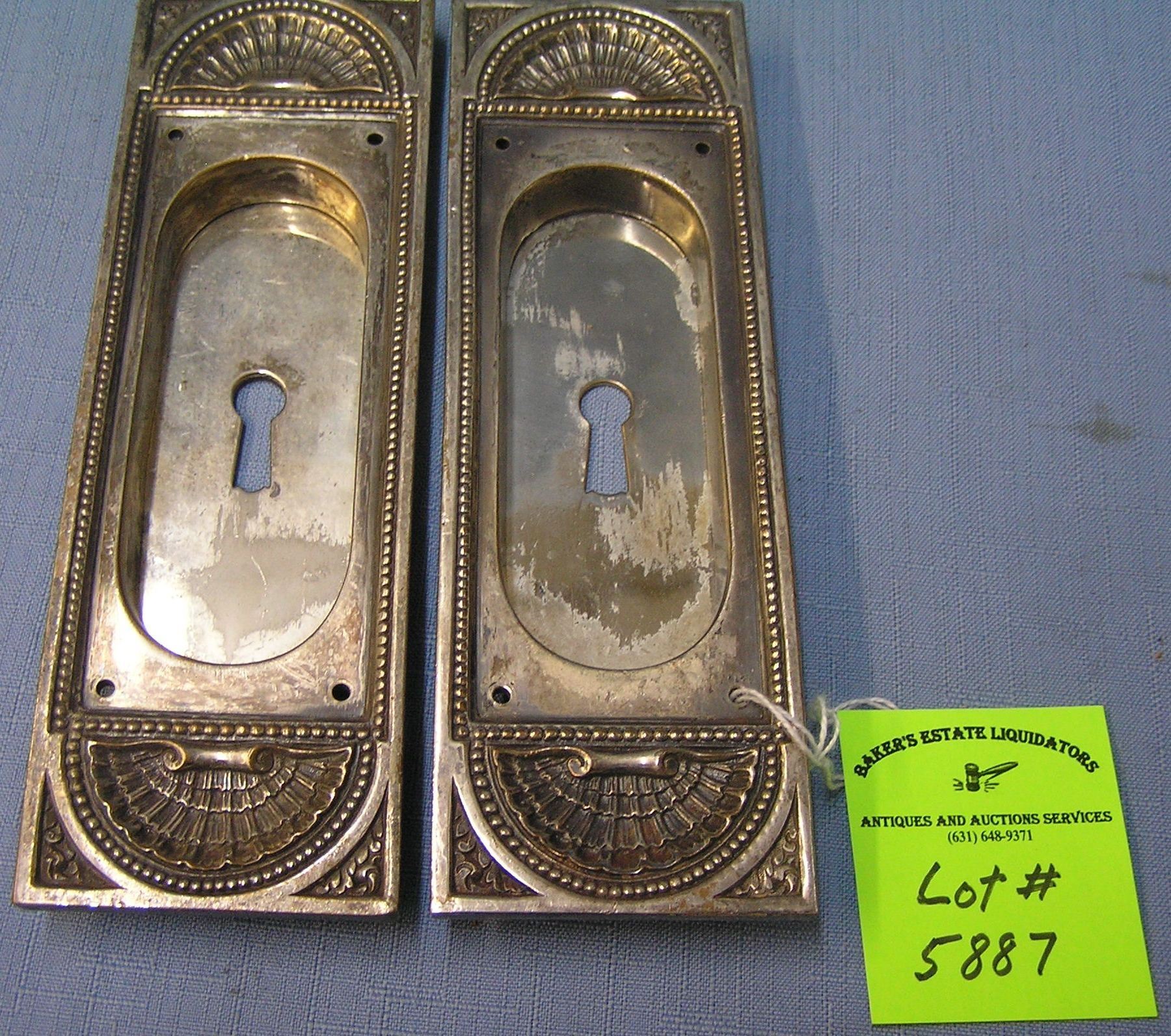 Pair of antique silver over brass estate door skeleton key hole receptacles $150.00-$175.00