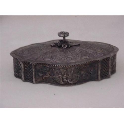Silver Plate Box. 9" long x 5 3/4" wide. Chased design. Needs a good polishing.
