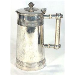 Silver plated Christopher Dresser style hot water jug with angular handle, marks to base, 22cm high