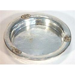 Silver plated circular dish with floral motifs, Connell mark to base, 15cm diameter…