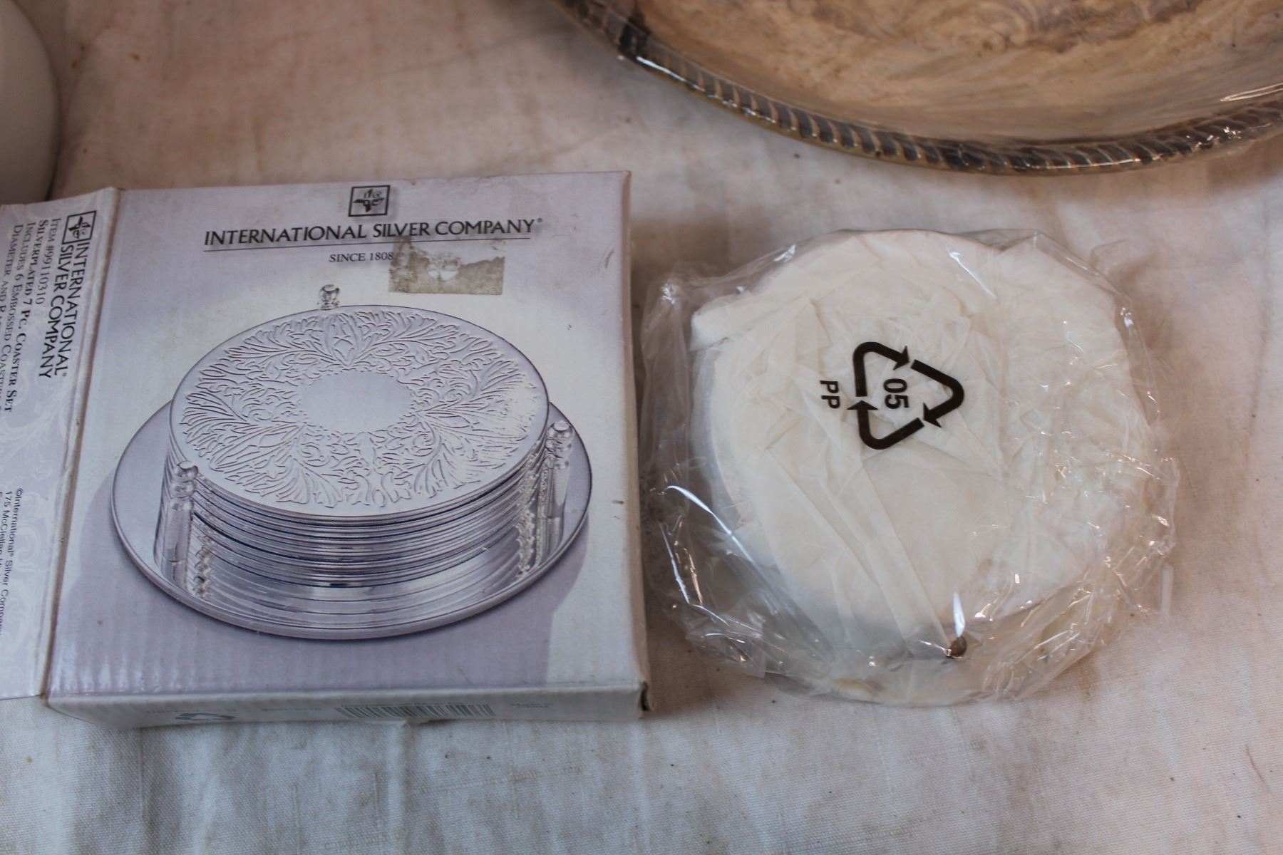 Silver plated dish and coasters, “The Iced Tea Pot”