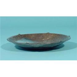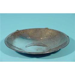Silver-plated embossed metal dish, designer: probably J. Crouwel, maker's mark with monogram J.C., ca. 1925, diam. 17 cm.