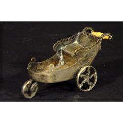Silver plated table salt in the form of a sleigh pram with ivory handle