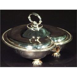 Silver plated twin divisional serving dish and lid with warming attachment, 22cm in length