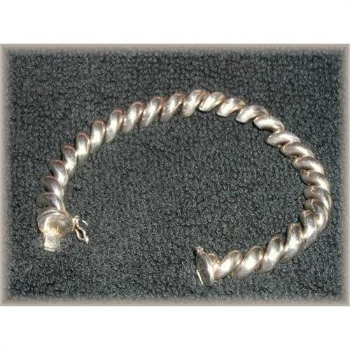 This is a nice 925 silver Brevetto "Macaroni" bracelet. The 1/4" links resembles a small macaroni shell. Bracelet measures 7 1/2" long and has slide-lock clasp with a safty latch. Both have secure closure. Maker stamped BREV, 925, Italy. It is in excellent condition.