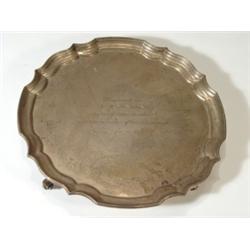 Silver scrolled edge tray on scrolled feet, JBC&S Ltd Birmingham, approx 15ozs