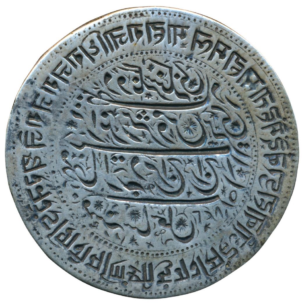 Silver seal of Mehta Sahmal, 40.24g, a courtier of Dungar Singh, ruler of Bikaner (1872-1887), dated 1872AD in Farsi numerals and with inscriptions in two languages – 1. Farsi in centre: ????? ????????? ???? ??????? ????? ??? ?????? ?????? ????? ??? ????? ???? ?? ????? (Mehta Sahmal 1872 Bandah-i Maharajadhiraj Rajarajesar Narindra Shiroman Shri Dongar Singh Jee Bahadur). 2. Devanagari around from 12 o’clock: ????????????? ??????????? ??????? ??????? ???? ????? ?????? ?????? ???? ????? ?????? (Maharajadhiraj Rajrajeshwar Narendra Shiromani Shri Dungar Simha jee Bahadur Bande Mehta Sahamal). Dungar Singh of Bikaner was crowned in 1872, which is the same date as one seen on this seal. Most likely therefore, the seal was prepared for Mehta Sahamal for or soon after this occasion. Very Fine+, Rare.