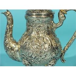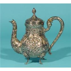 Silver teapot, neorococo, decorated with rocailles and putti, German, ca. 1920, h. 18 cm.