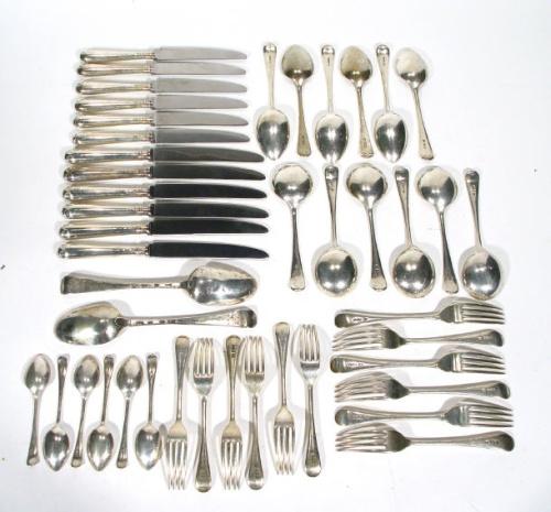 Silver twelve place cutlery set comprised twelve knives, forks, six teaspoons, tablespoons and desse