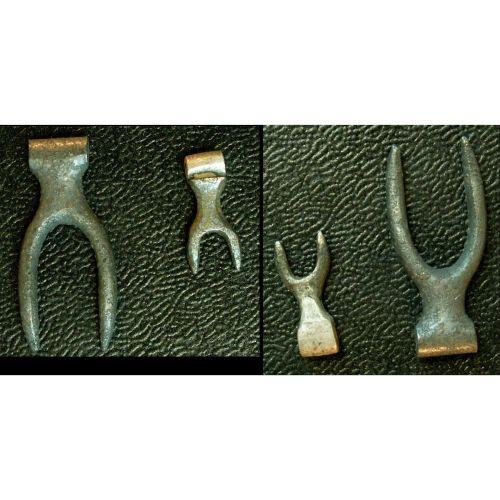 Silver two pronged clip or portion of. Includes two similar items one small and the other slightly bigger in size, looks like a two pronged fork, of what was probalby at one time half of a buckle to hold fix leather straps or garment, could have been part of dress wear and/or used on the ship. <BR><BR>Notice. For all winners of lots pertaining to the Auguste Shipwreck, please be advised that due to Canadian Laws in reference to the Exportation of Archeological and Shipwreck finds, a request for permission to export these items must to be filled and sent into Canadian Customs for approval for every lot won and shipped outside Canada. In most cases this will cause a delay of 10 to 20 business days for all shipment of lots once payment received. We have been in discussion with Canada Customs and anticipate no problems. We ask for your patience and will do our best to keep each buyer updated on their lots. Please contact us for further information if necessary.