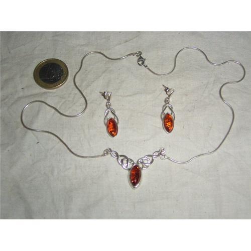 <tr><td>Title:Silver with Amber Necklace & Earrings</td></tr>