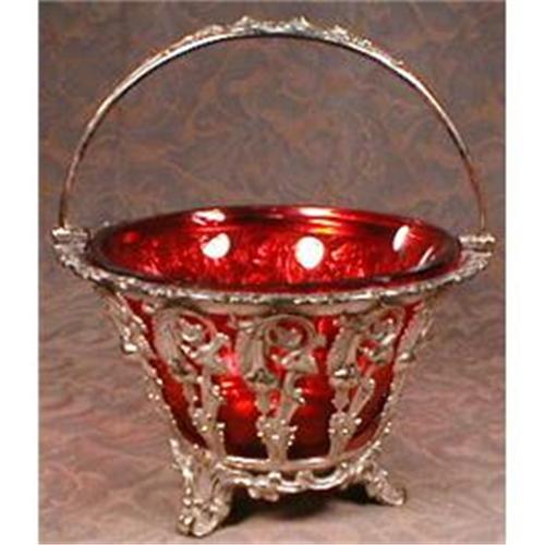 basket with cranberry glass liner.<p>Circa late 1800s to early 1900s