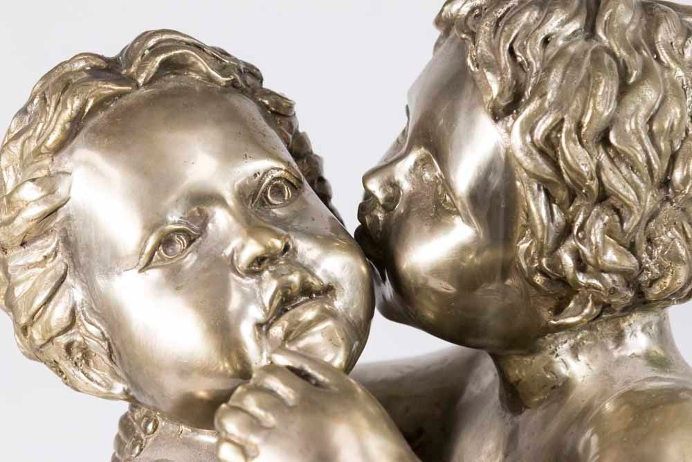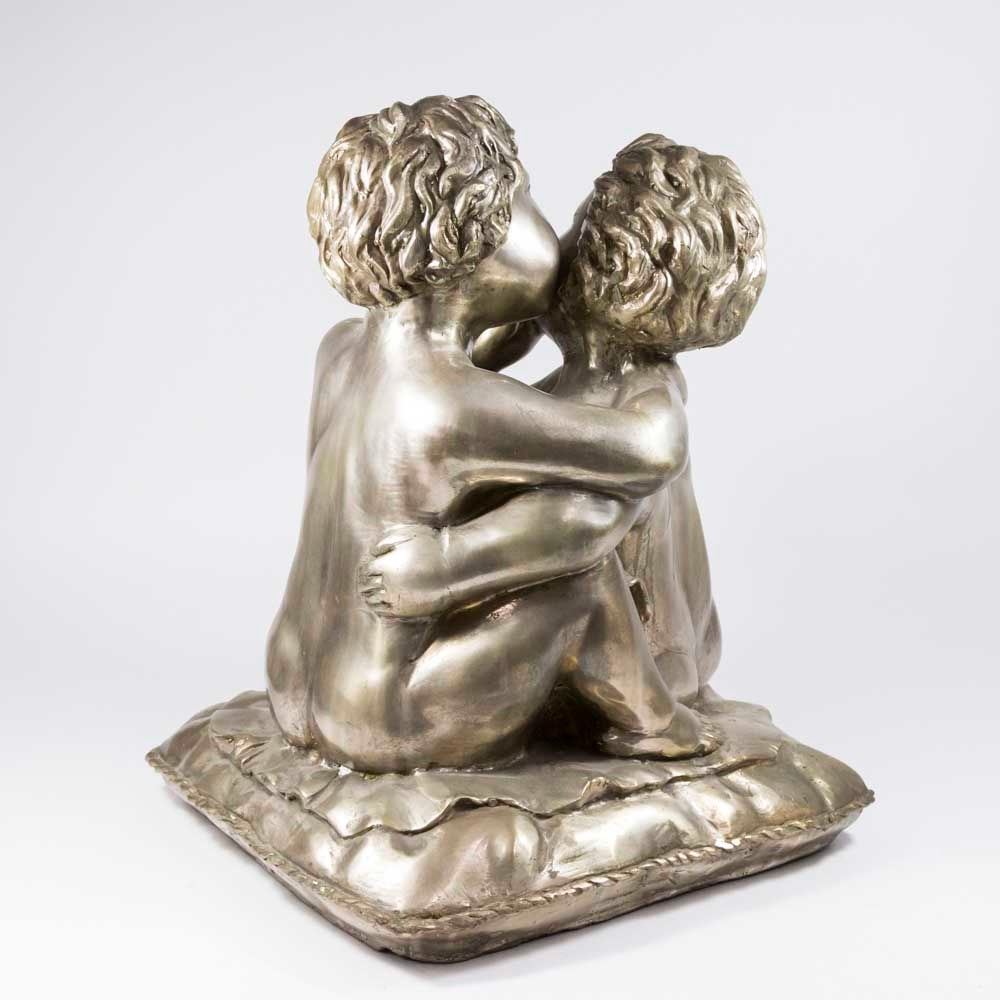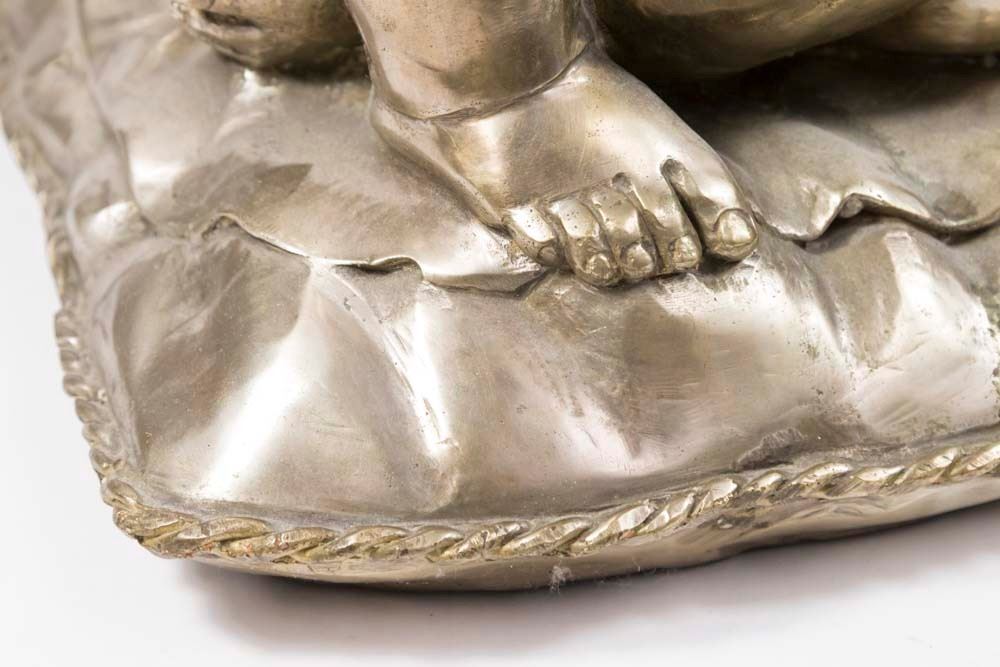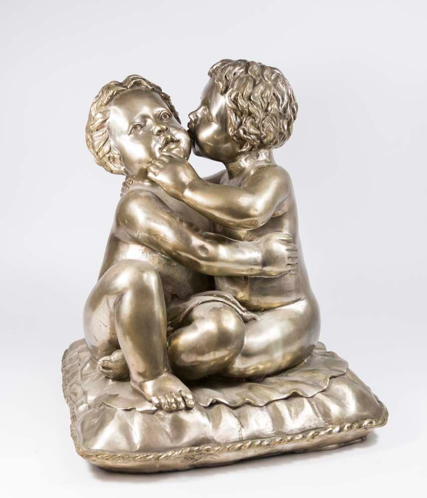 Silvered Bronze Sculpture, 2 Children on Pillow