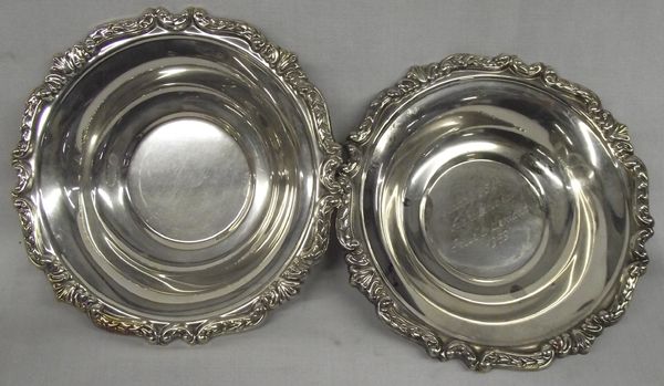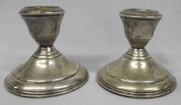From the Proctor Collection we have Silverplate Bowls & Candlesticks, large bowl measures 1.75''H x 12.25''W and large candlestick measures 8.5''H x 4''W, #1 large candlesticks are marked ''Wallace 5010'', very heavy #2 small candlesticks are marked ''S sterling cement reinforced'' #3 Two carved rim bowls, one has been monogrammed ''Happy 25th Anniversary Jesse & Seniada 1989'' #4 large lattice style bowl marked ''Wm Rogers 835''