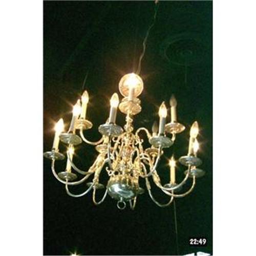 This is a silverplate chandelier from the 1950's. It us US wired, has 15 lights, and is in excellent condition! 23 high, by 30 wide. Please contact us for more photos or information. Thank you, Le Louvre Antiques.