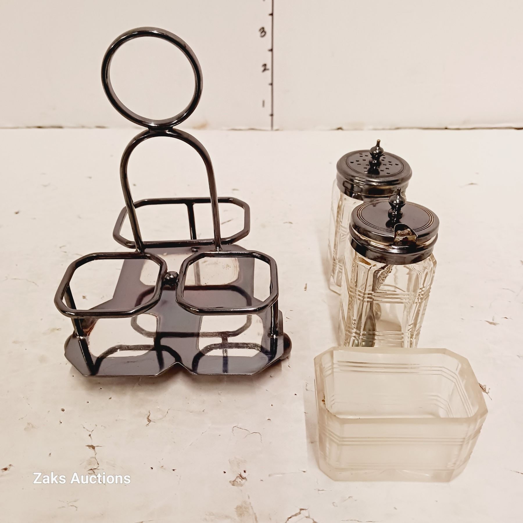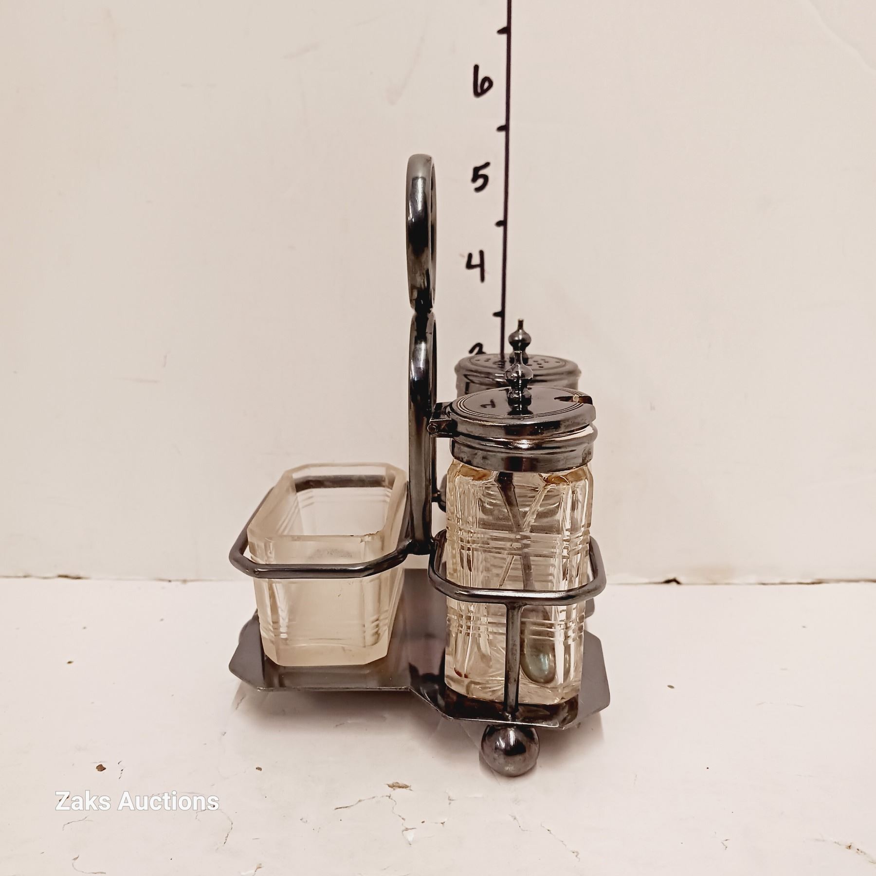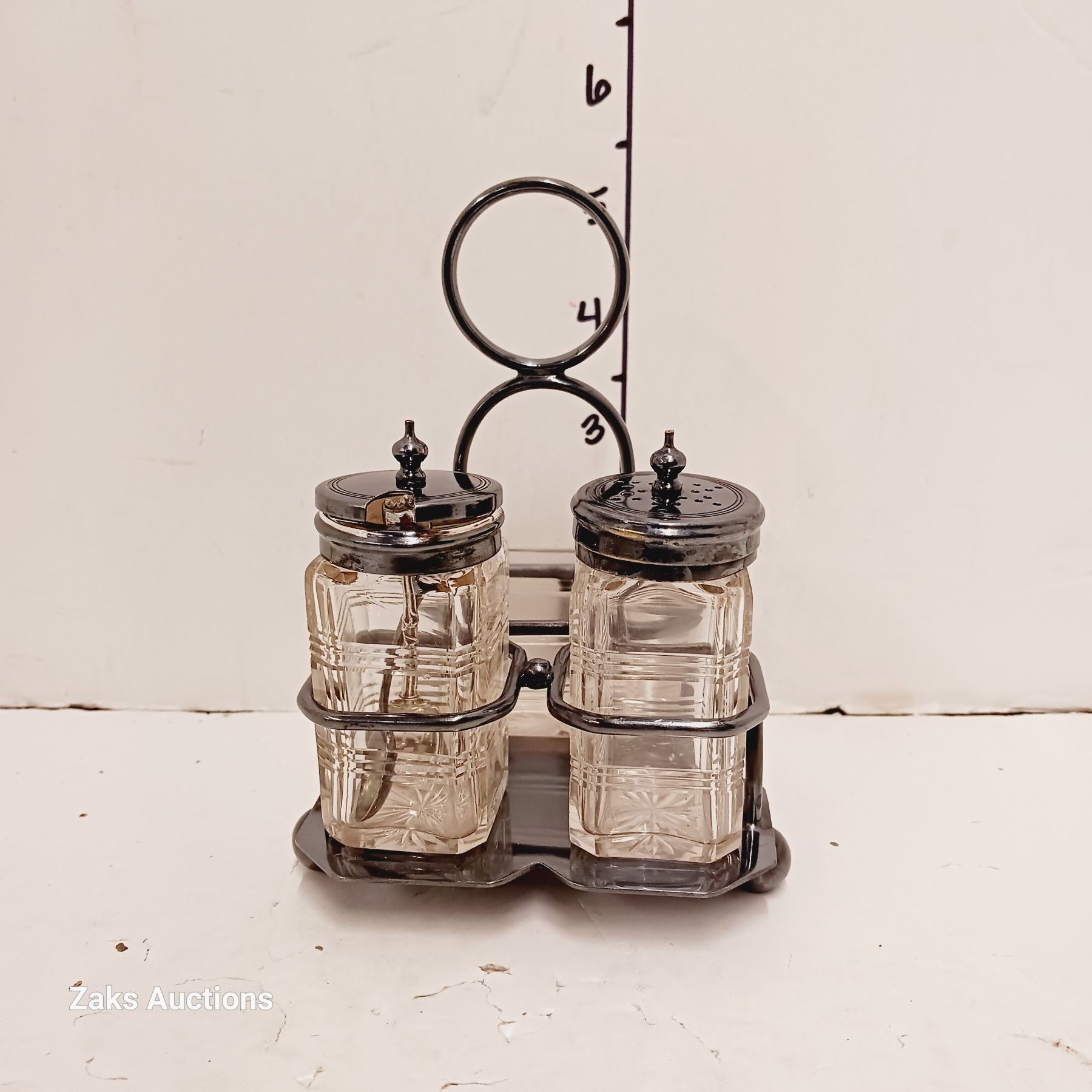 Silverplated & Glass Salt & Pepper Shaker in Tray - Hallmarked
