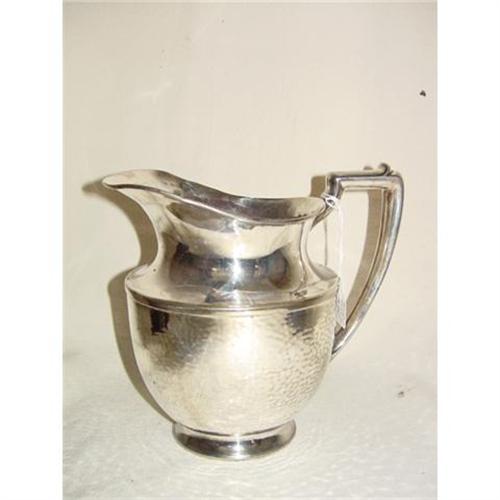 Circa 1930 unique hammered silverplated water pitcher .Manifactured by Meriden silver company Silvered water pitcher weight 24 ounces height7-1/2".In excellent condition and would make a fantastic gift.Please email us if you would like additional picture or more information.Thanks antique gallery.