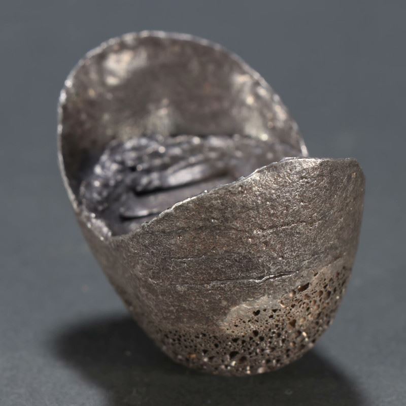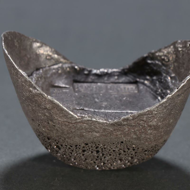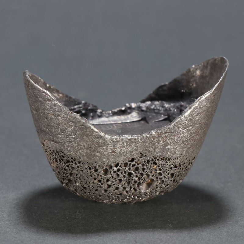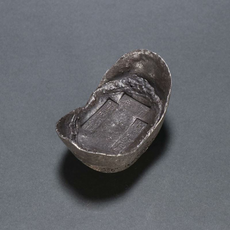 This silver ingot, meticulously crafted by the silversmith Wang Gui, weighs ten taels and features a smooth surface with markings of the silversmith’s seal and weight. It reflects the exquisite craftsmanship of traditional silversmithing and serves as an important item in historical currency transactions and economic activities.