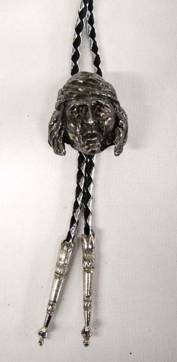 Silvertone Apache Head Bolo Tie, slide measures 1.75'' x 1.5''