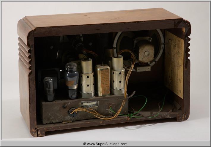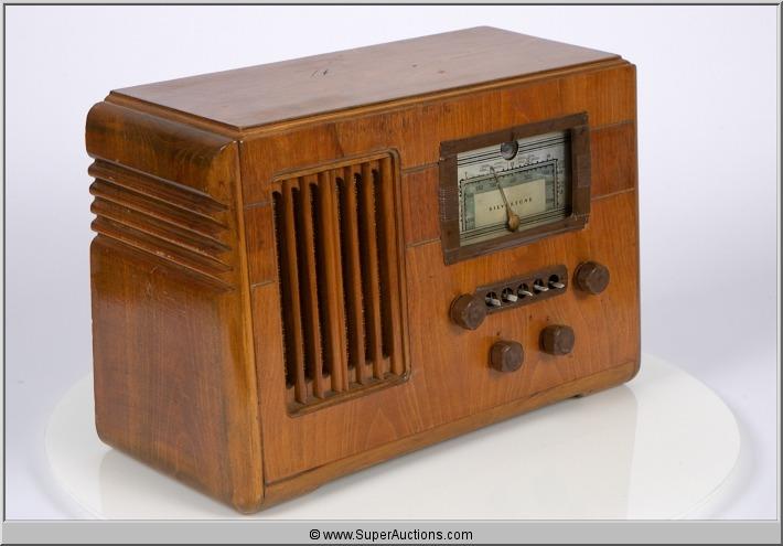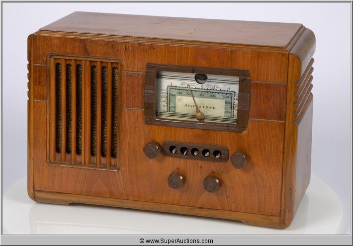 Silvertone Radio Model 6125 / Serial No. 693943 / No back closure / Pre-set Buttons missing from the front although they do push in / Damage to the back bottom left corner {19" L x 9" W x 12 1/2" H} {Weight 18 Pounds}